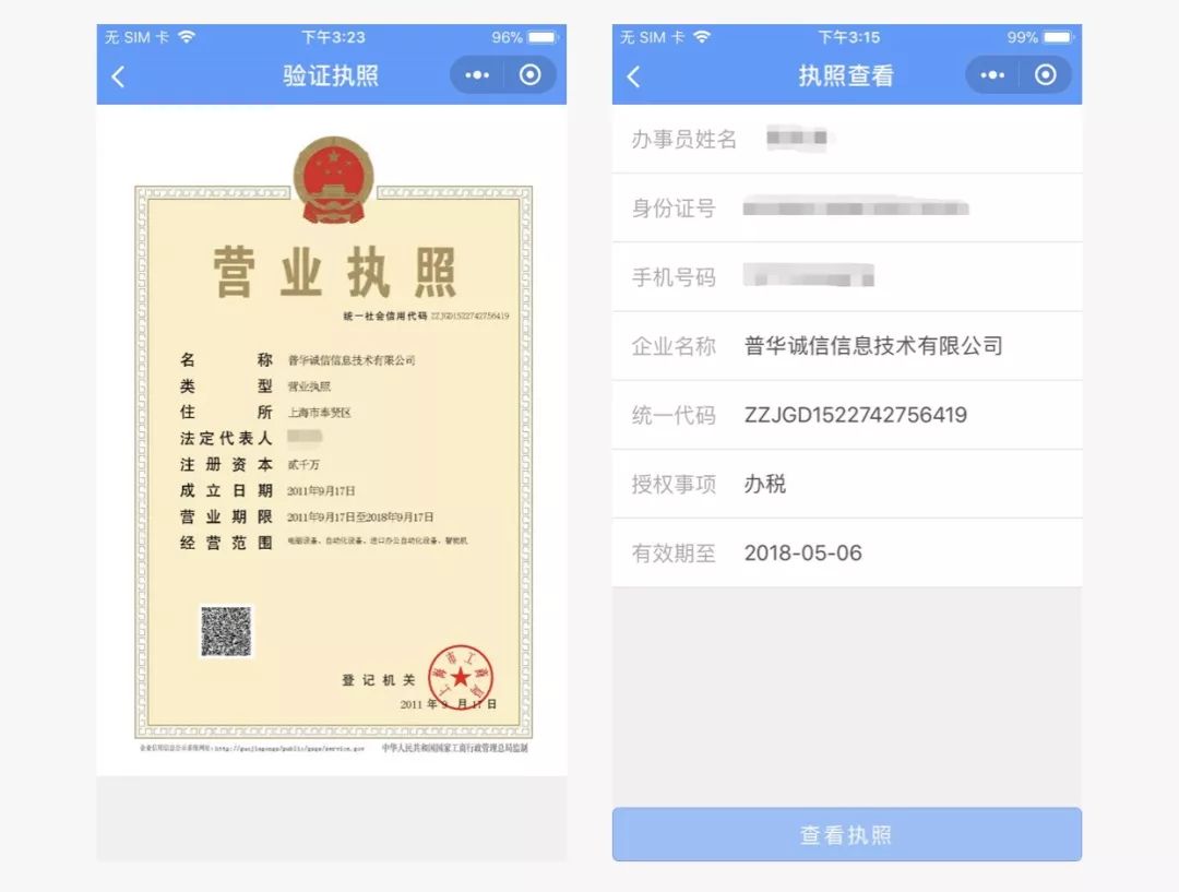 这就是微信电子营业执照小程序的界面了。