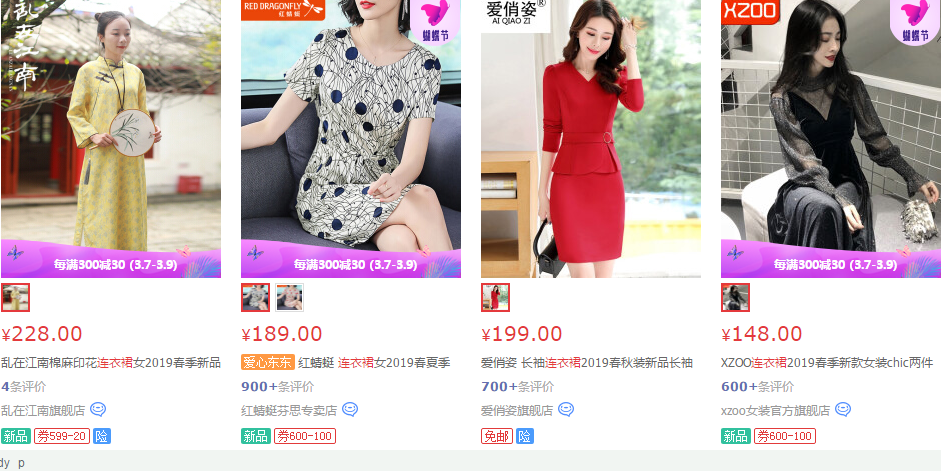 京东代运营举例:我们在搜索连衣裙的时候,下拉框会出现很多连衣裙相关的词,例如现在很多商家已经在做夏季的上新了(虽然还有很多地方还是羽绒服),我们选择的时候就可以采用连衣裙夏 学生这个属性了。